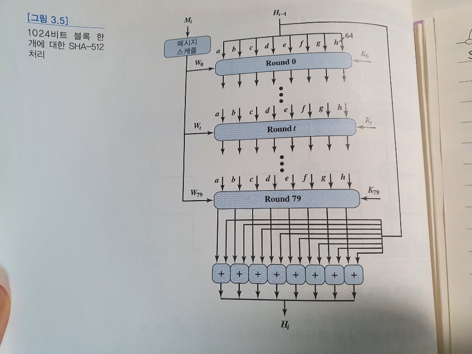- SHA-512 알고리즘에서 해시 코드의 각 비트는 입력으로 사용되는 모든 비트의 함수가 된다.